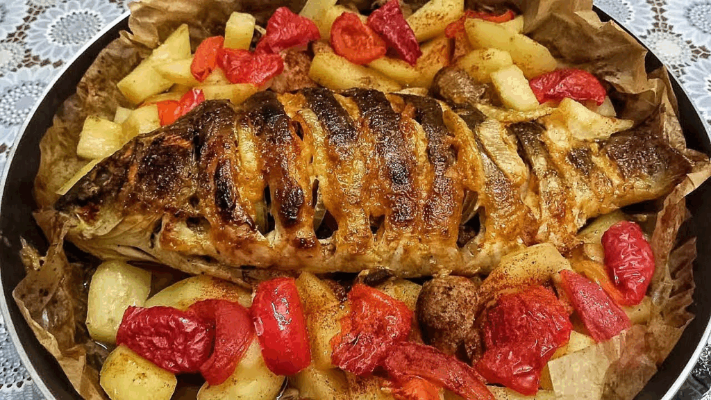 - Короп запечений з овочами: річкова риба, яка готується з морквою та цибулею.