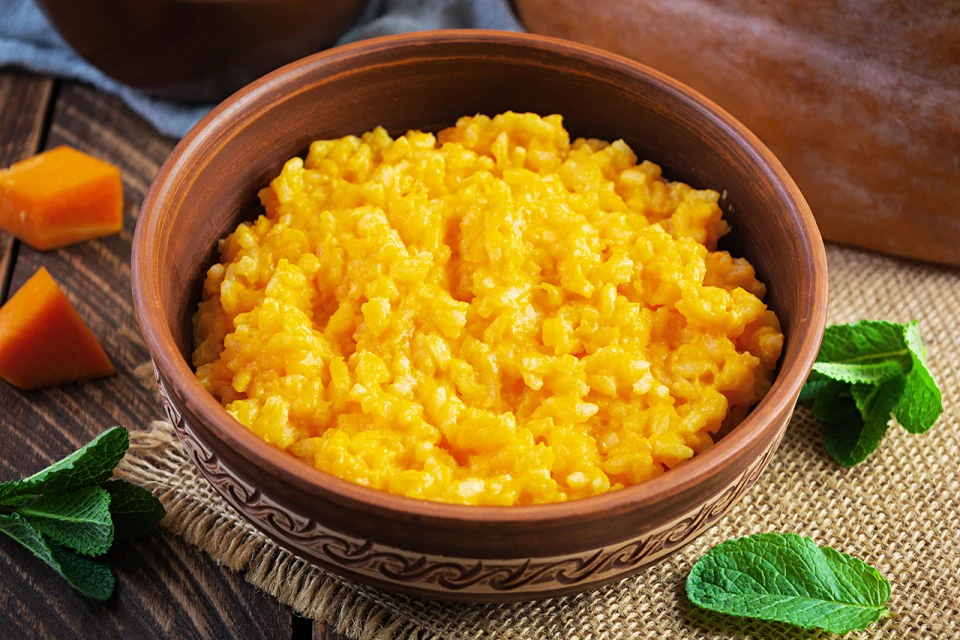 - Гарбузова каша: приготована на воді з додаванням пшона та цукру.