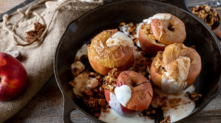 - Печені яблука: плоди, начинені горіхами та медом, запечені у печі або духовці.